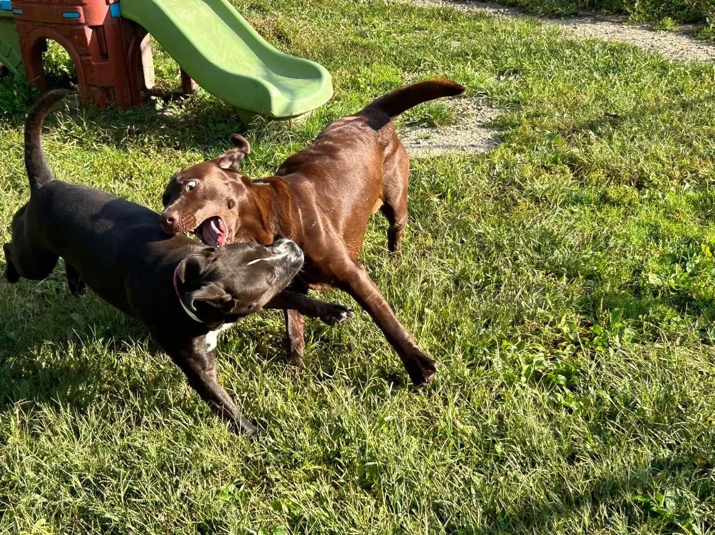 Preventing a fight will always be better than breaking up one. I keep a close eye on body language and vocal signals to make sure everyone is having fun. It’s not fair for one dog to be enjoying themselves a lot more than the other; I want the fun to be equal!