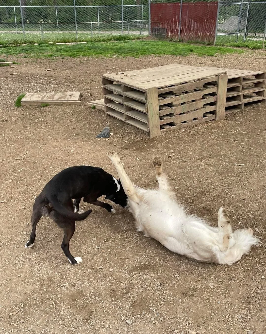 Another sign of play, believe it or not, is sneezing! Another daycare dog, Larkin, is excellent at doing this. Larkin can be a little mean sometimes (she knows who she likes and who she doesn’t. Can't blame her), so I have to really watch to make sure she’s actually playing and not bullying her friends. But the biggest thing I look for when she’s playing is the sneezing. She could be snarling and nipping, but she throws a sneeze in there, and I know all is well and she’s having fun. She's similar to Daisy in how rough she plays, so it's important to look for these signs to make sure everyone is safe.